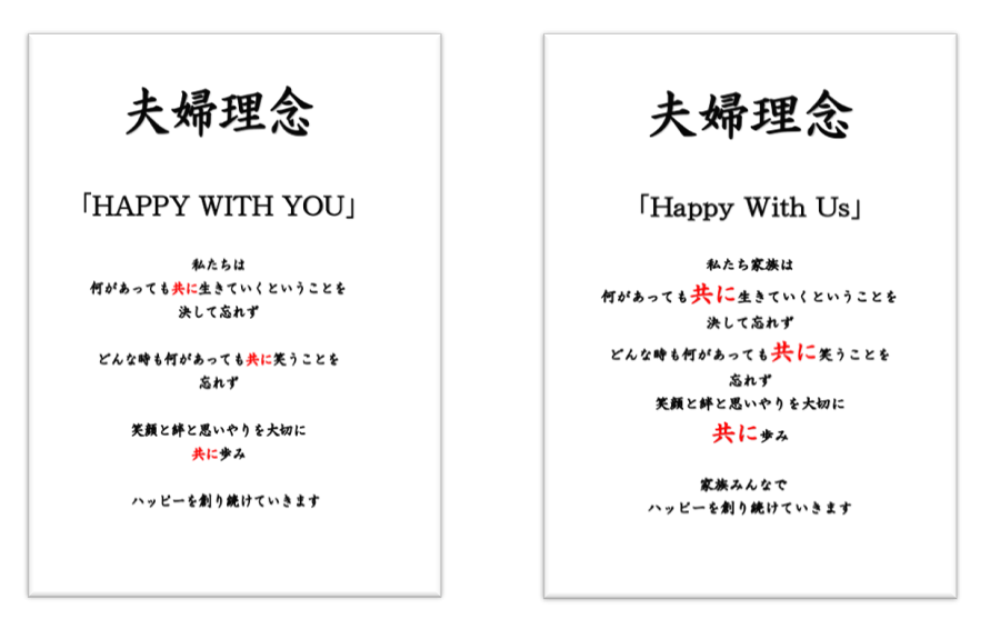 そして、尾崎家・坂本家の夫婦理念が完成!